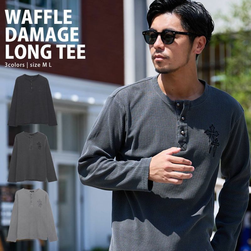 Tシャツ メンズ ブランド おしゃれ ロンT 長袖 ワッフル 長袖Tシャツ トップス カットソー クルーネック 通気性 吸汗速乾 保温性 軽量 柔らかい ブラック グレー 黒 シンプル ナチュラル ヴィンテージ風 クロス 十字架 刺繍 大人 M L 20代 30代 40代 50代 クール ユニセックス 男性 男 服 秋 秋服 春 冬 ファッション メンズファッション 東京 プレゼント 誕生日 記念日 贈り物 ギフト