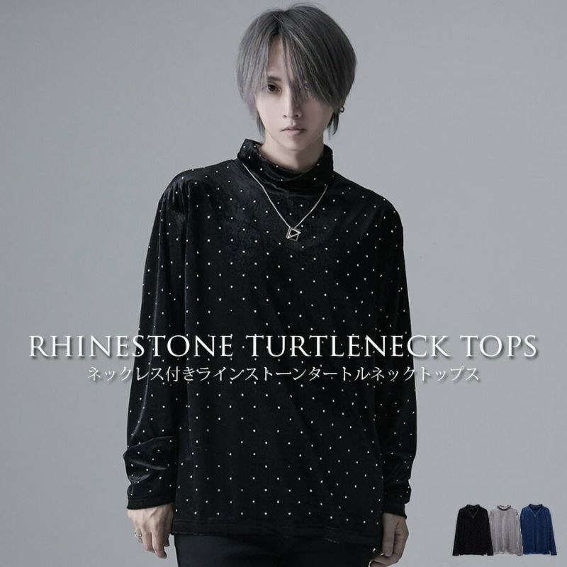 光沢感が美しいベロア素材全面にラインストーンデザインを組み込んだタートルネックのロンTです。