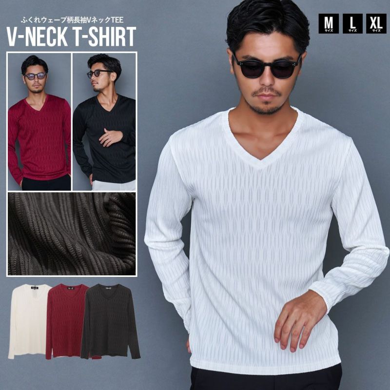 5. CavariA【キャバリア】ふくれウェーブ柄長袖VネックTシャツ/全3色【メール便対応】
