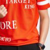 アートのように構成されたグラフィックワードがインパクト抜群の半袖Tシャツ。