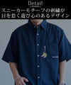胸ポケット部分に施されたスニーカーモチーフの刺繍が目を惹く、遊び心のあるデザインが特徴の半袖シャツです。
