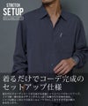 着るだけでコーディネートが完成する、長袖シャツとパンツのセットアップです。