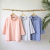 夏のリゾート感を演出してくれるプルオーバータイプで襟付きのカプリシャツ。