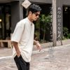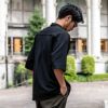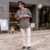 全体は程よくゆとりを持たせたリラックスシルエットで、体のラインを拾いすぎず、自然と大人の余裕を感じさせるフォルムに。