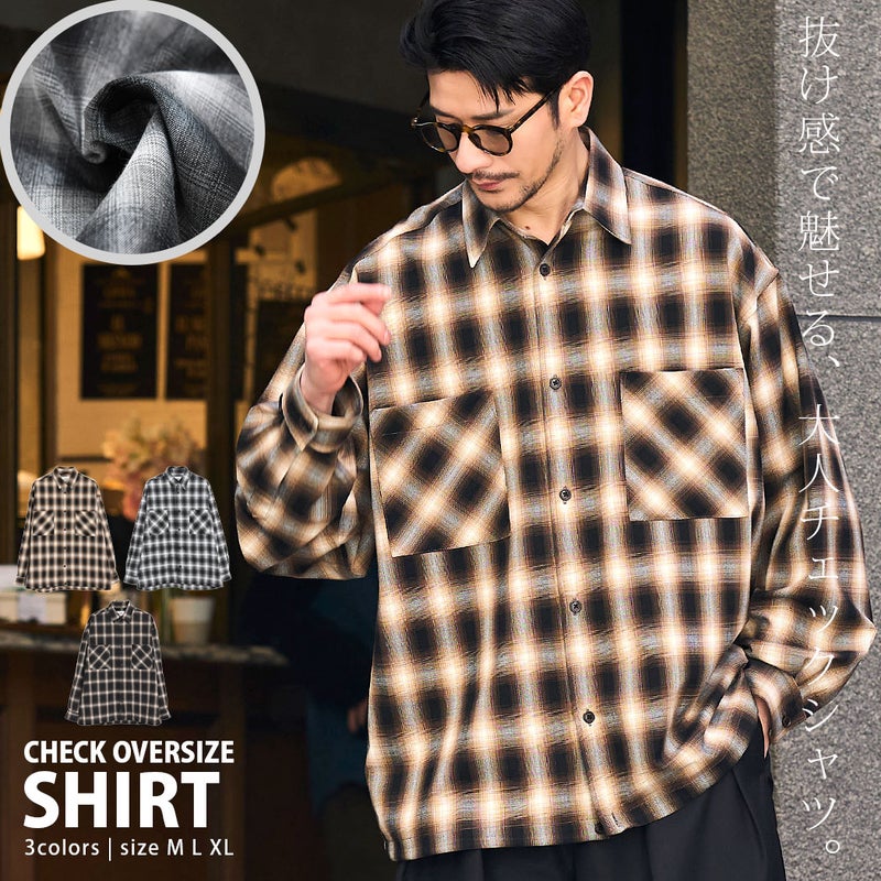 大胆なオンブレ調チェックが目を引く、トレンド感漂うシャツ。
