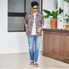 大胆な総柄デザインながらも、派手すぎず、スタイリングに取り入れやすい一枚です。