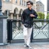光の角度や動きによって柄の表情が変化し、シンプルながらも存在感を放つ一着です。