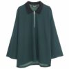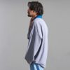 トレンドのハーフジップ仕様に仕上げたクレリックデザインの長袖シャツ。