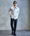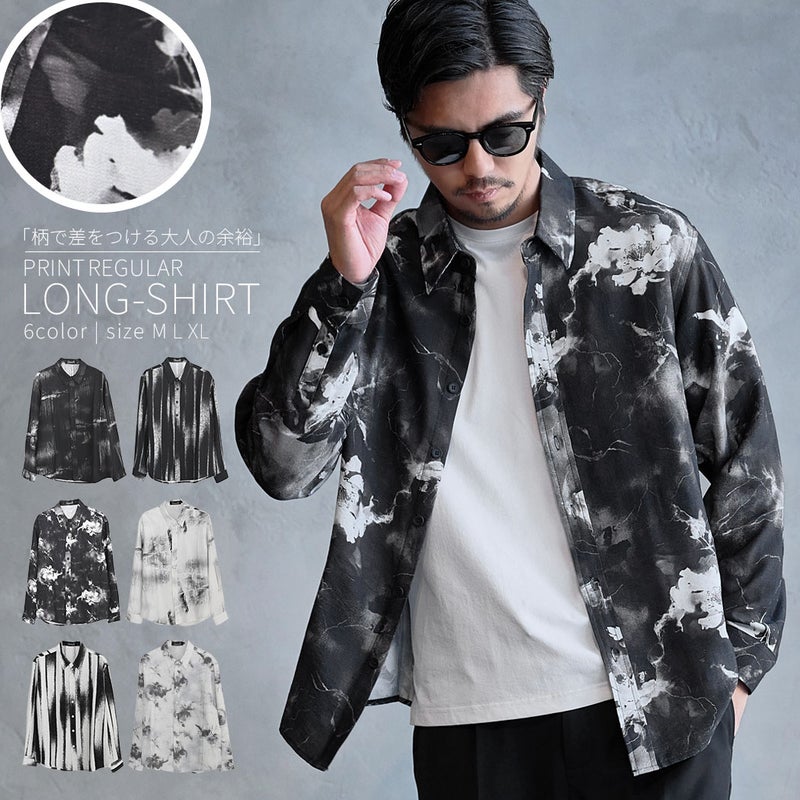 モノトーンで構成された洗練プリントが印象的なレギュラーシャツ。
