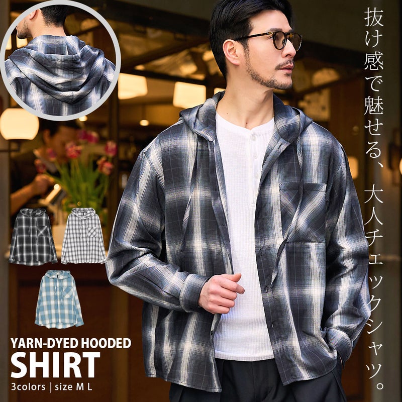 フード付きでカジュアルな印象を持ちながらも、シャツとしてのきちんと感も兼ね備えています。