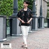 テーラードジャケットインナーやセットアップの外しでオープンカラーシャツを取り入れても面白いです。