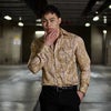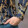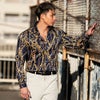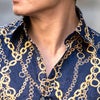 大胆にプリントされたチェーンがインパクト大な高級感あるラグジュアリーなドレスシャツです。