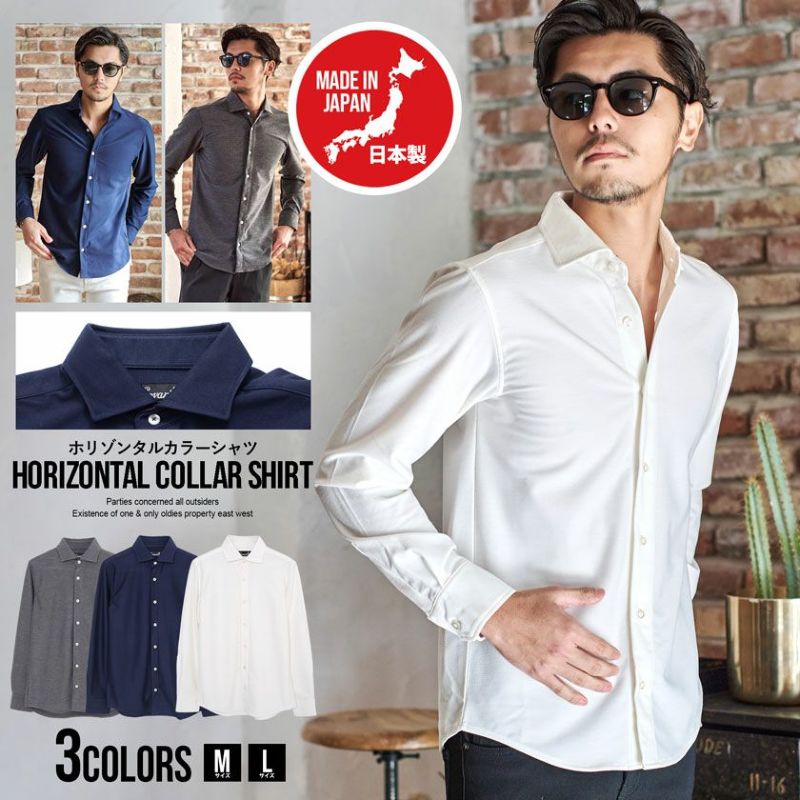 長袖シャツ メンズ シャツ ニット 日本製 国産 ホリゾンタルカラー 大人 おしゃれ カジュアル シンプル 無地 大人 きれいめ キレイ目 グレー ネイビー ホワイト 白 M L CavariA 男性 男 服 秋 冬 秋冬 ファッション リモートワーク 在宅勤務 ビジネス 男性 男 父の日 父の日ギフト 父の日プレゼント 20代 30代 40代 メンズファッション 東京 プレゼント 誕生日 記念日 贈り物 ギフト