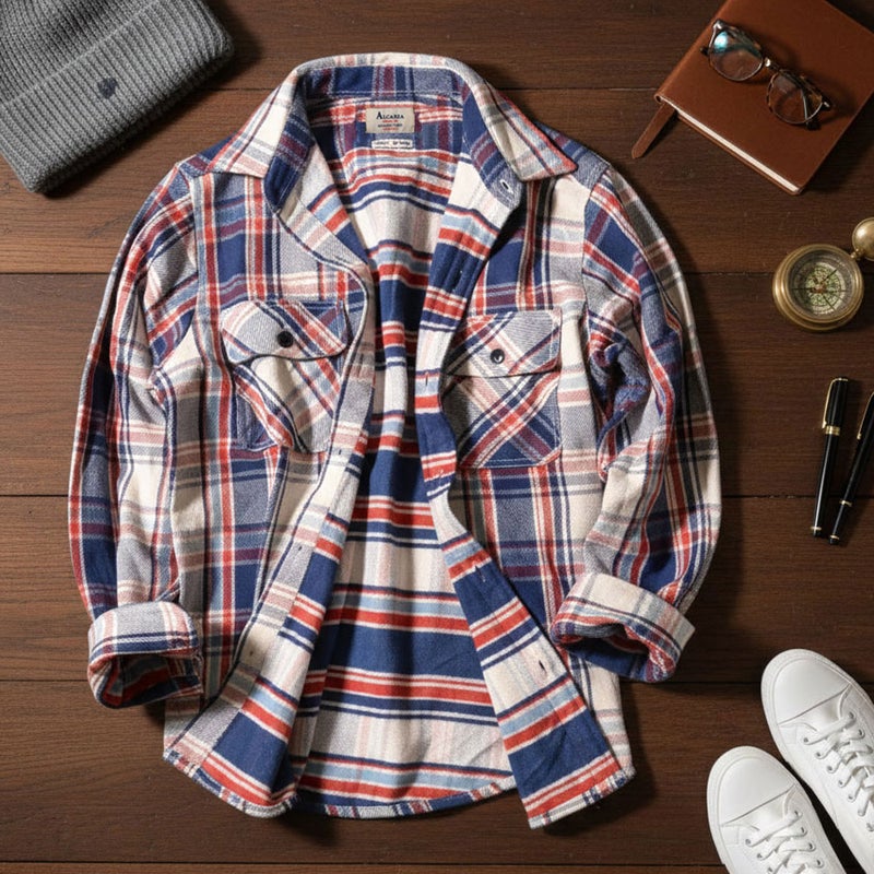 素材は肉厚なインド産コットン100%のヘビーフランネル生地を使用し、アウター感覚で着られるネルシャツジャケットです。