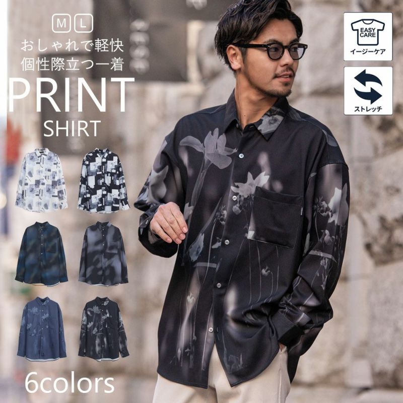 シャツ メンズ ブランド おしゃれ 長袖 カジュアルシャツ ルーズシャツ 大きいサイズ ゆったり 総柄 プリント ユニセックス シンプル大人 オトナ カジュアル ストリート アメカジ きれいめ 上品 冬 春 冬服 秋冬 ホワイト ブラック ブルー 白 黒 M L 服 男 男性 父の日 父の日ギフト 父の日プレゼント 20代 30代 40代 メンズファッション 東京 プレゼント 誕生日 記念日 贈り物 ギフト