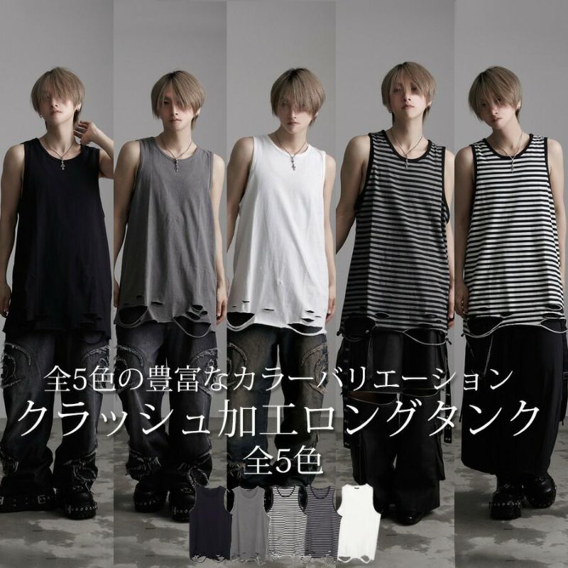 タンクトップ メンズ ブランド おしゃれ タンク ノースリーブ トップス クラッシュ ダメージ カットソー モード ヴィジュアル系 ビジュアル系 V系 原宿系 モード系 原宿系 カジュアル ストリート系 韓国系ファッション きれいめ キレイめ 大人 00s風 y2k y3k ファッション 服 ゆったり 夏 春 インナー 男性 男 父の日 父の日ギフト 父の日プレゼント 20代 30代 40代 メンズファッション 東京 プレゼント 誕生日 記念日 贈り物 ギフト ロング丈 ビッグ 服 黒 ブラック 白 ホワイト