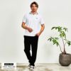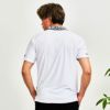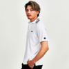 衿部分に凹凸のあるジャガード生地を採用したジャガード襟半袖ポロシャツ。