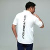 肩にワンポイントとバックに大きくロゴをプリントしたインパクト抜群なポロシャツ。