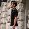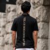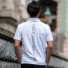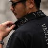 正面は無地で一見シンプルですが、襟と背中にプリントされているブランドロゴが印象を与える1着です。
