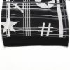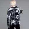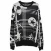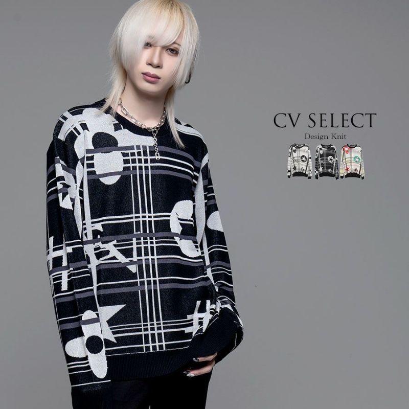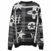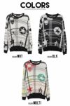 全体をチェック柄とさまざまなロゴを組み合わせた総柄デザインに仕上げたジャガードニット。