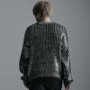 ブラックの厚手ニットにブラック箔、シルバー箔をそれぞれ全面に配置した2色の長袖プルオーバーニットです。
