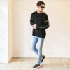 程よいドロップショルダーに身幅を広めに取りゆったりとしたシルエットがこなれた雰囲気を演出。