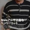 リブ編みのデザインでシンプルなボーダーヘンリーニット。
