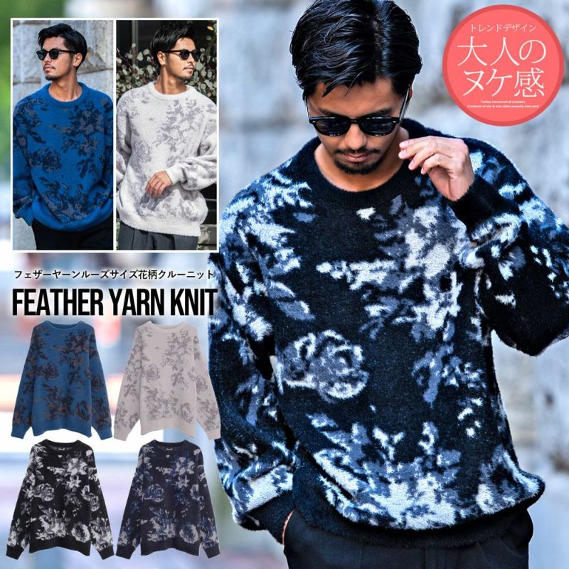 ニット メンズ セーター ブランド 大人 フェザーヤーン シャギーニット フラワー柄 花柄 トップス あったか 暖かい 総柄 抽象柄 ブラック ナチュラル ネイビー ブルー 黒 M L ユニセックス 男 男性 服 CavariA 秋 冬 秋冬 20代 30代 40代 ファッション 東京 プレゼント 誕生日 記念日 贈り物 ギフト ルーズニット ルーズサイズ 保温性 ニット ストレッチ素材 ラフスタイルニット メンズカジュアル ゆったりシルエット