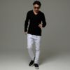 織り方やVネック、ブランドロゴが高級感ある大人カジュアルを演出してくれます。