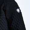 立体感のあるケーブル編みと品のあるジップアップデザインを組み合わせた贅沢仕様。
