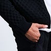 高級感のある編み地パターンを全面に施し、シンプルながら存在感のある一着に仕上がっています。