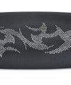 光を受けて煌めくラインストーンが動きに合わせて表情を変え、ブラックボディにシルバー調のストーンが映えるモードな仕上がり。