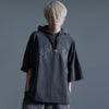 フードの角が印象的なデザインでTシャツ感覚で着られる薄手の半袖パーカーです。