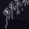 フロントにはファイアターンをミックスしたアーチ状の刺繍デザインを配置し、裾はカットオフの仕上げ。