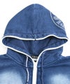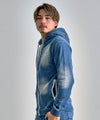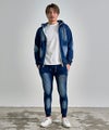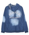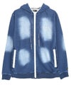 ヴィンテージ感漂う色落ち加工に、ラインストーンロゴをプラスしたカットデニムジップパーカー。