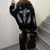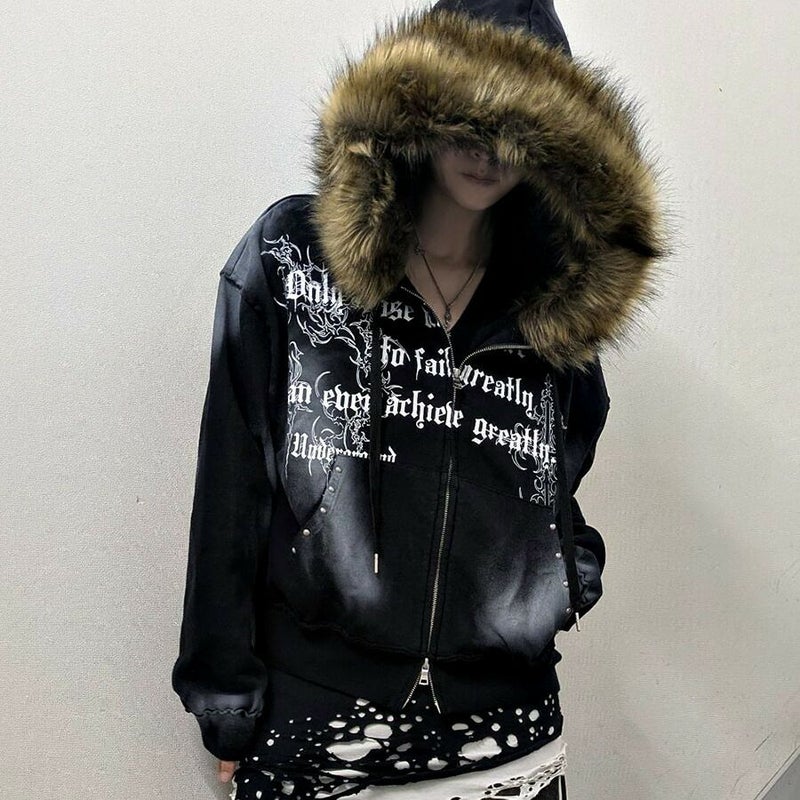 更にスプレー吹き付け、クロスプリント、スタッズ使いでグランジ感を表現したフーディーが登場。