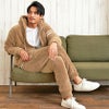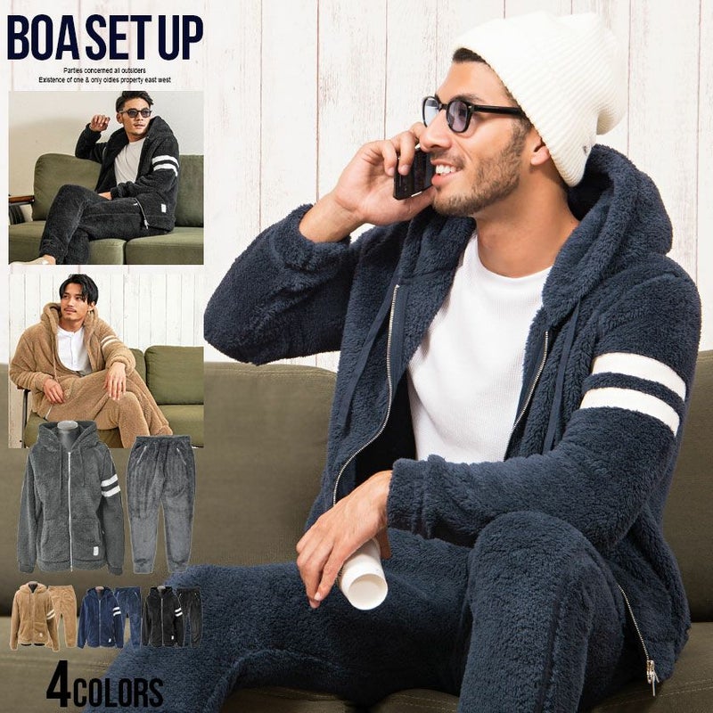 ※モデル画像は照明などの影響により実際の商品と異なる場合がございます。【メンズ ボア ボアパーカー ボアパンツ 2点セット 無地 袖ライン 秋冬 部屋着 BITTER系 ビター系 秋 冬 2020↑↑↑】