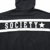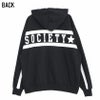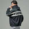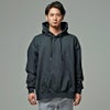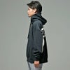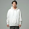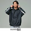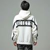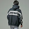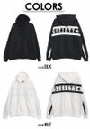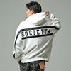 バックに大胆なPUレザーラインロゴプリントデザインが目を惹くプルオーバーパーカー。