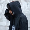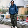 フロントにあしらった大きなロゴが特徴のプルパーカー。