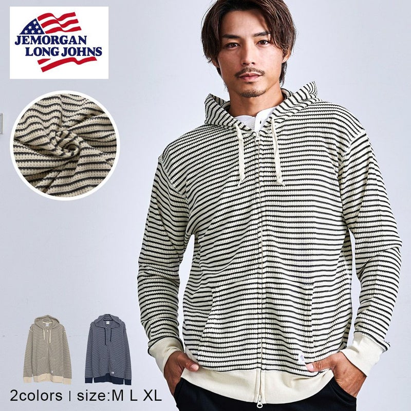 パーカー メンズ JEMORGAN LONG JOHNS ジェーイーモーガンロングジョーン ワッフル素材 ボーダー柄 綿ポリ ジップパーカー ジップアップ フード付き 軽量 羽織 アウター カジュアル スポーツ アウトドア 大人 20代 30代 40代 50代 ちょいワル ユニセックス 男性 男 服 秋 冬 秋冬 ファッション 東京 プレゼント 誕生日 記念日 贈り物 ギフト