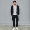 ジャガード生地でロゴを全体にほどこしコーデのアクセントにしたフルジップ長袖パーカー。