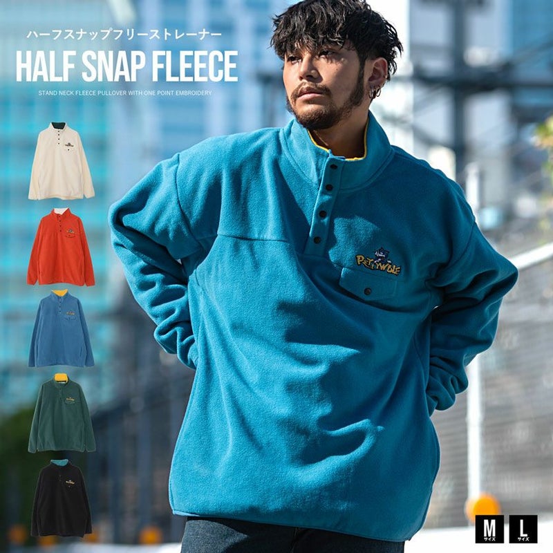 スタンドネックにハーフスナップ仕様で、襟元の配色がさりげないおしゃれを演出してくれます。