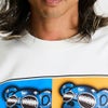 フロントにはポップアート風のグラフィックが施されており、コーディネートの主役になる一枚です。