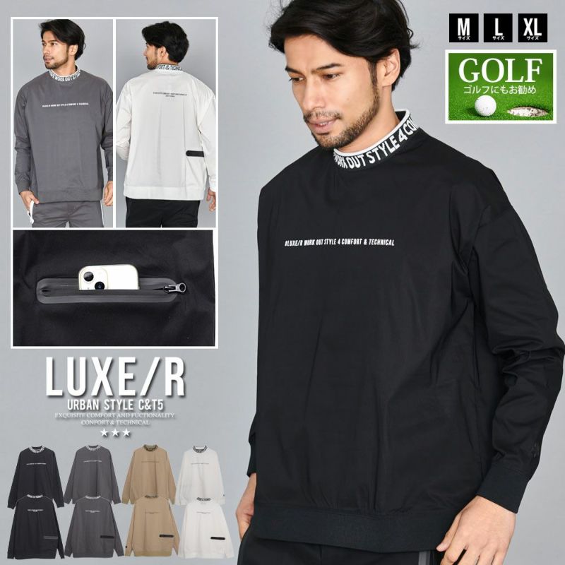 トレーナー メンズ モックネック スウェット スエット 布帛 ブランド おしゃれ ロゴ トップス ストレッチ ホワイト ブラック グレー ベージュ 黒 白 M L XL ゴルフ ゴルフウェア スポーツ ユニセックス LUXE/R ラグジュ 20代 30代 40代 服 秋 冬 秋冬 ファッション 東京 プレゼント 誕生日 記念日 贈り物 ギフト