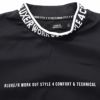 首周りにデザインしたロゴが目を惹くモックネックトレーナー。