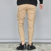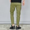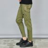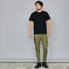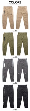 伸縮性のある布帛素材を使用したテーパードシルエットのイージーパンツ。