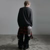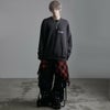 ビンテージ感ある褪せた色合いに加え、首周りや袖つけ、リブ部分など縫い合わせる部分は縫い代を表に出したデザインとなっており、グランジ感をうまく演出しています。