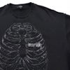 フロントはレントゲンの様な肋骨のプリントでアクセントでワンポイントの掠れロゴプリント、袖には腕の骨のプリントを施しています。