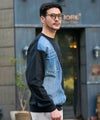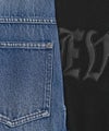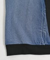 デニム素材を大胆に切り替えたインパクトあるデザイン。