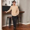 ポリエステル、レーヨン、再生繊維、ナイロンを混紡した素材は柔らかくリラックスした快適な着心地です。